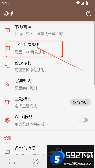 1、进入我的界面,找到并点击目录规则选项;
