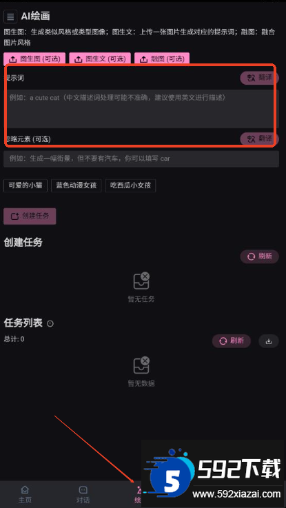 例如进入AI绘画功能,确定提示词并创建任务,即可快速生成所需的绘画作品。