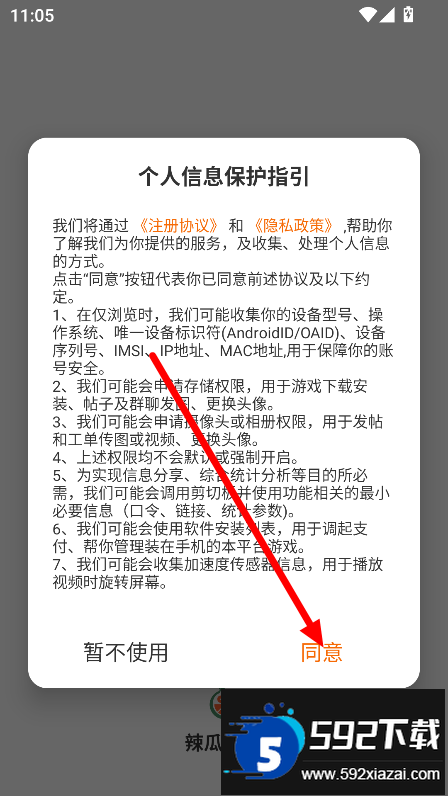 2. 点击同意隐私权限