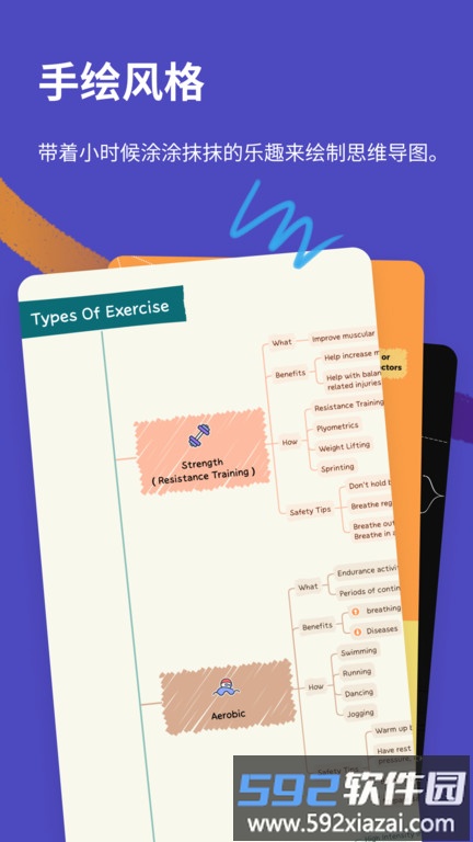 > 10套视觉主题:全新设计的主题模板,为每张思维导图注入鲜活生命力;