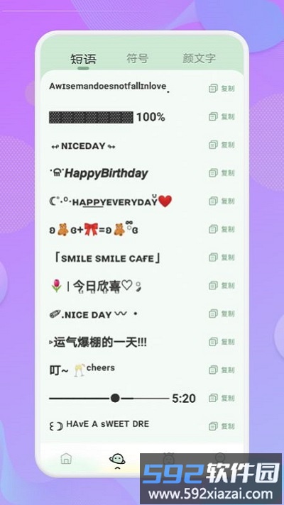 1、应用内整合了多种风格的字体、符号与文字壁纸;