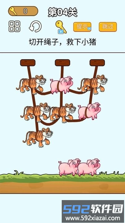 2.玩家只需轻触屏幕,割断绑住小猪的绳索