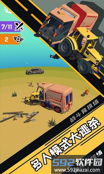 精准操控车辆突破关卡,需要将所见敌人都粉碎在锯刃之下。