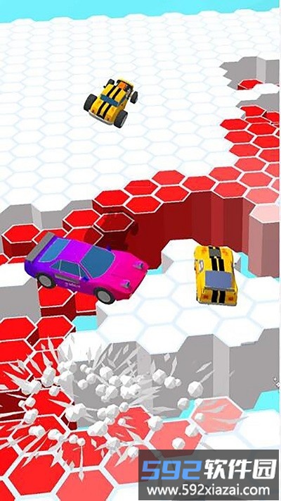3、在持续缩小的竞技平台施展控车艺术,用漂移线条绘制胜利版图;