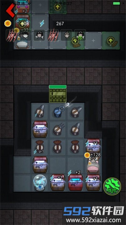 2.发展经济建造炮台,有效抵御猛鬼进攻。建筑只能放置在房间的空地板上