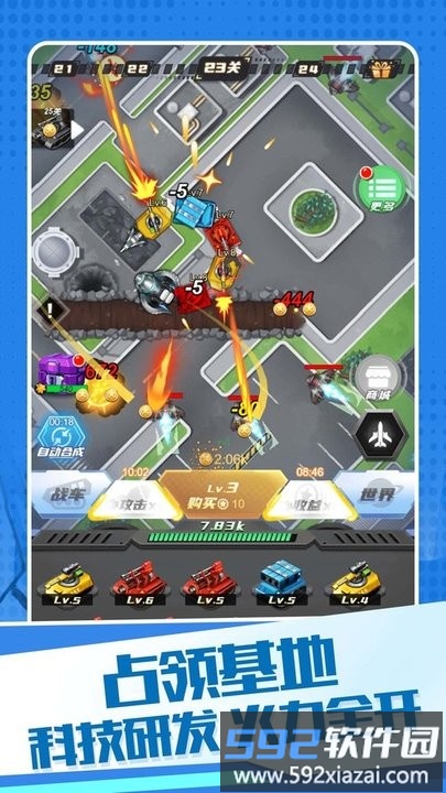 色彩明快的卡通战场里,每台装甲都拥有专属的战斗特性与必杀技