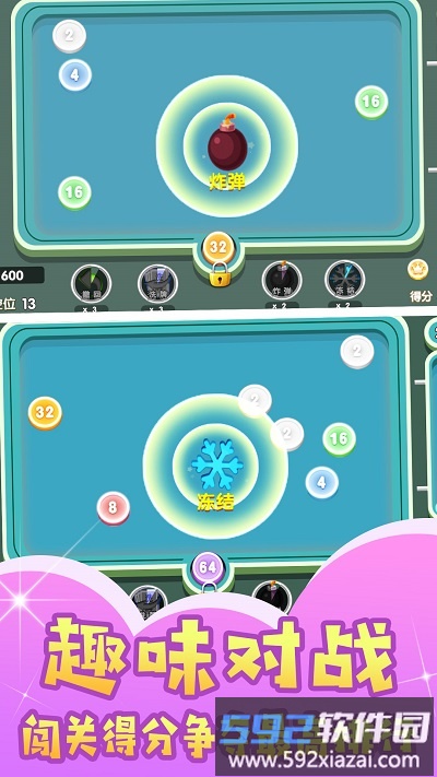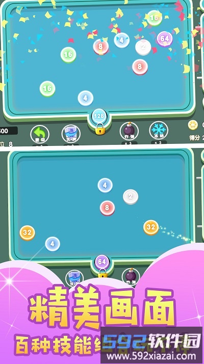 2、连续合成会产生连锁反应,数字翻倍增长带来爽快体验