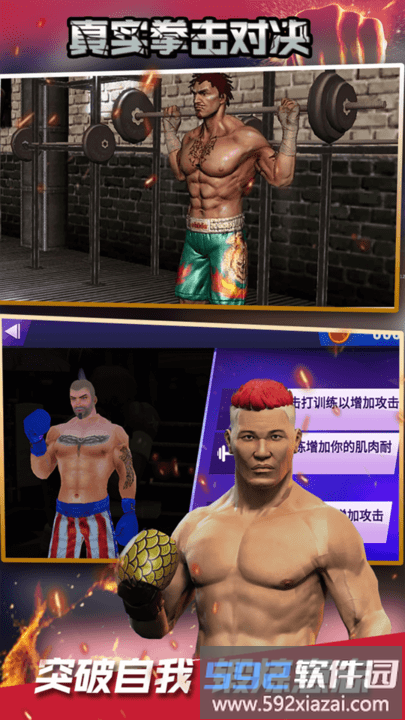 从肌肉线条到纹身图腾,百款配件随心搭配。通过反应特训与体能挑战持续进化,打造独一无二的冠军形象。