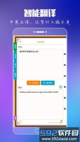 4.收录境外旅行高频词汇与场景对话,划分十二大类近千组对话,配备双语对照与语音播报,轻触即可跟读。生词难句可实现自动转译与发音。