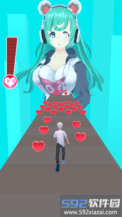 将跑酷节奏与文字选项巧妙交织。角色在三个赛道间灵活切换时,突然出现的选择题会暂时减缓时间流速。这些问题涵盖生活趣事到灵魂拷问,你需要同时保持手指灵活与头脑清醒。当好感度攒满五颗心,终点线的女神会展开笑颜迎接。