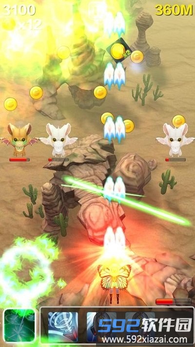 1、指尖操控魔女走位,闪避敌军与弹幕攻击;