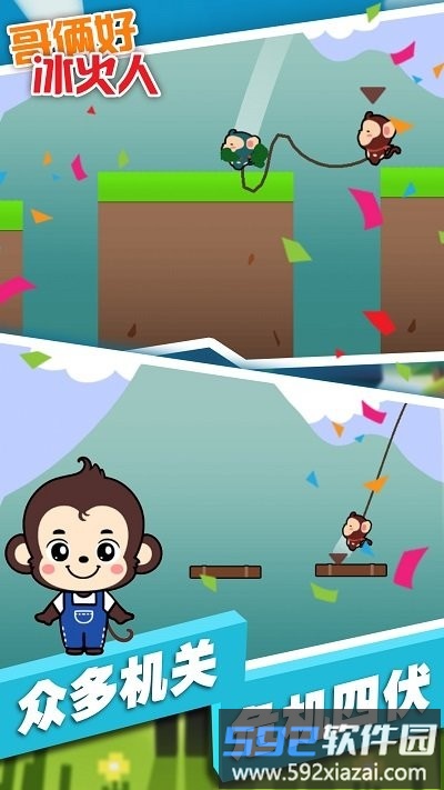 两位玩家将操控造型俏皮的猴子角色,在布满机关的赛道上交替跳跃前进。关卡设计中暗藏多种精巧机关,需要你们展现敏捷身手与默契配合。虽然操作简单易上手,但关卡挑战充满趣味性与思考空间。