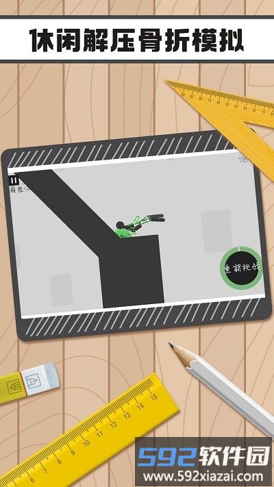 这款游戏融合了荒诞幽默与解压放松的特质,打破常规的玩法设计让人耳目一新。玩家要做的不是保护火柴人,而是让它以最夸张的方式碎裂。游戏里断裂的肢体越多,结算时的分数与金币就越是丰厚。