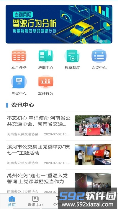 该应用服务于智慧公交培训体系,集成七大核心模块:培训中心、信息公告、先进个人展示、驾驶行为分析、企业动态、行业政策解读与企业要闻推送。
