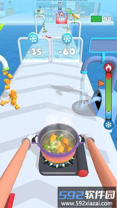 融合多元素材的跑酷玩法,化身餐厅主厨穿梭于食材之间。沿途需要精准调控火候温度,将收集的原料转化为精致料理。地面散落的食材决定着菜品完成度,特定食材对温度有着严苛要求。界面右侧设有烹饪进度条,直观显示食材处理时机与加热状态。全力经营你的美食据点,让餐厅名声传遍大街小巷。