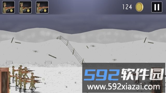通过屏幕角落的按钮征召作战单位,歼灭敌军与摧毁掩体可获得资金补充。善用火炮群进行战场压制,将是掌握主动权的关键所在。
