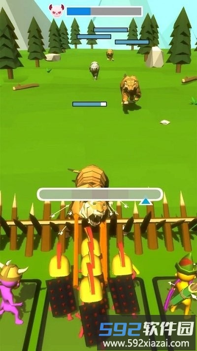 2、在游戏中直面野兽军团的冲击,守护部落的安宁,体验紧张刺激的攻防战