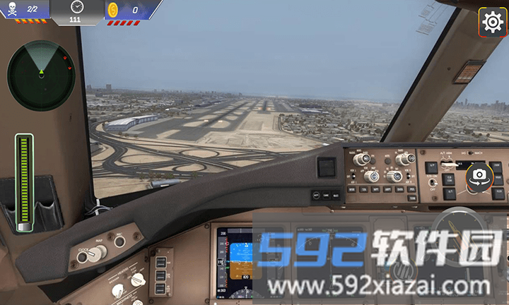 1.握住虚拟操纵杆,驾驶舱仪表盘实时反馈飞行数据