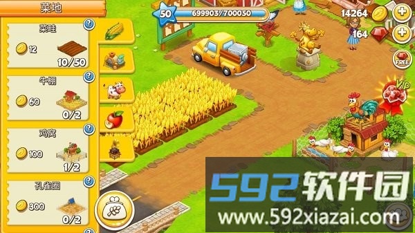 3、作物种类丰富,设施可升级,还能饲养萌宠