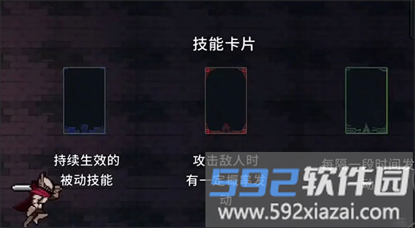 技能主要分为:核心攻击技能(红色卡)、辅助增强技能(绿色卡)、属性增益技能(蓝色卡)。