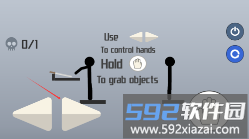 2、左侧方向键负责调整火柴人手臂角度,通过上下左右滑动控制投射方向。