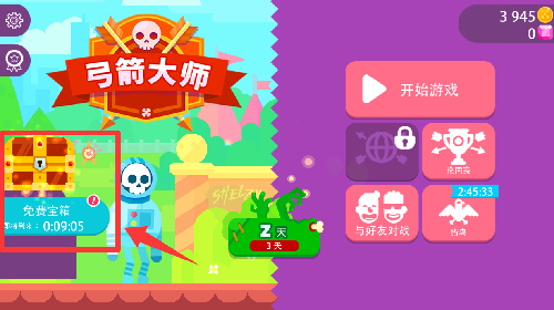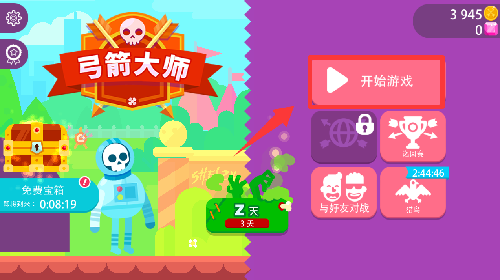 3、找到画面中标红的开始按钮,点下去立刻开启你的射箭之旅。