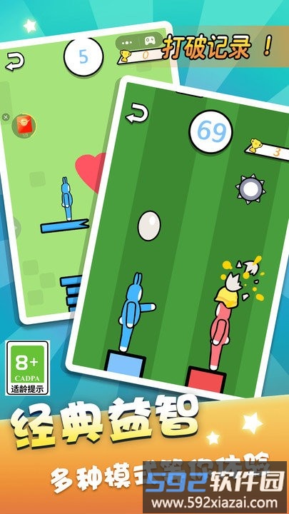 蹦极达人官方版本是一款充满刺激的蹦极冒险游戏,你将引导角色迎接重重考验。每个舞台都设置了独特障碍,只有突破极限才能通关,各式各样的场景设计等你体验,心动不如立即开始。