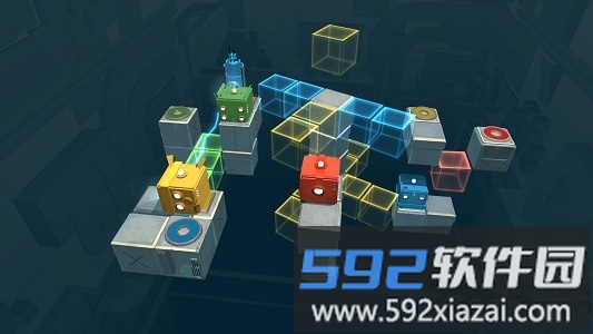 -玩家需操控各自的机器人,在激光等复杂机关中灵活穿行,最终到达彩色标记区域。
