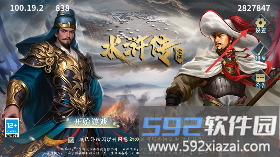 1、打开游戏主界面,找到右上角的设置图标并点击。