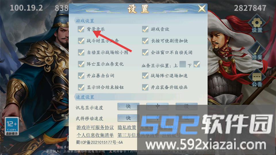 2、在设置面板中,将背景音乐选项前的对勾取消。
