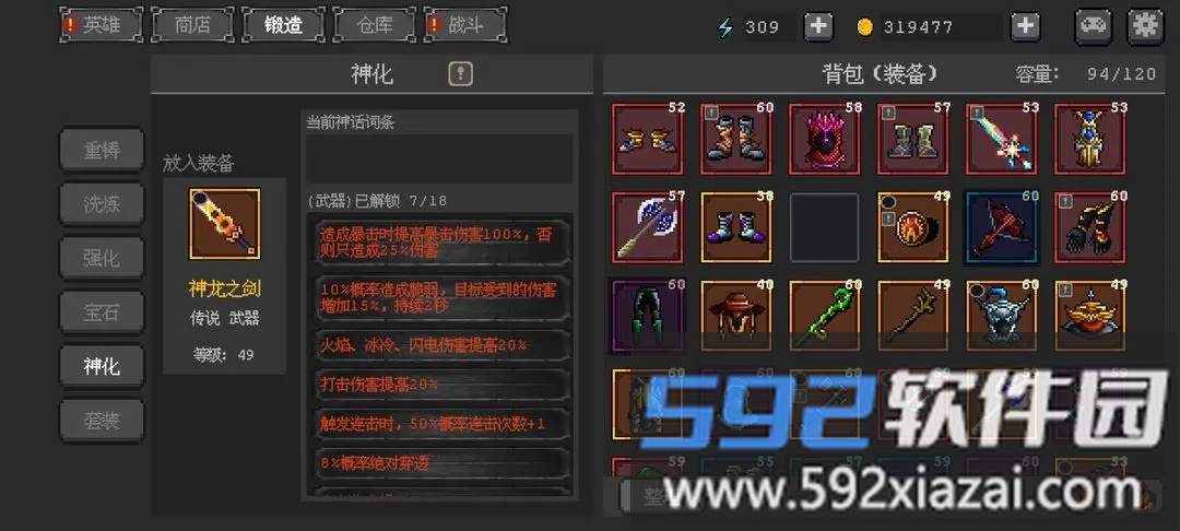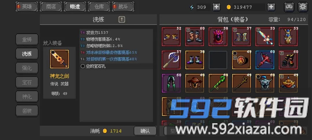 消耗神石可将橙色装备进化成红色装备,或替换红装词条。可在已解锁词条库中自由选择搭配。
