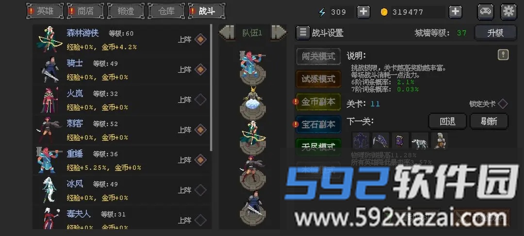 2、利用宝石镶嵌与英雄进阶系统,全面提升队伍战斗力。