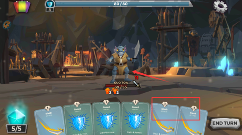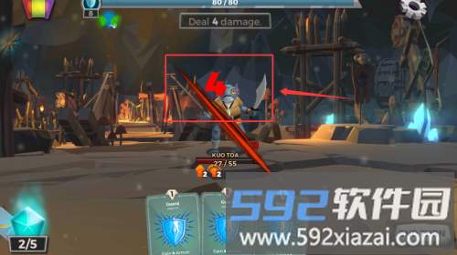 1、使用“迅捷打击”卡牌,向库尔托亚发动攻击,造成4点伤害值。