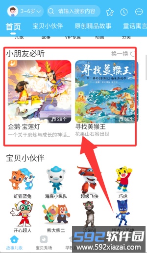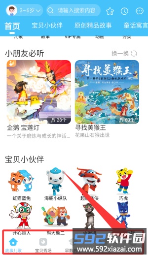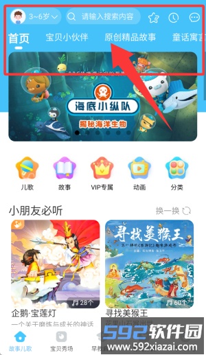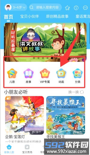 1、每天打开软件后,建议先浏览各个内容分类,获取更多故事与儿歌资源,方便后续快速找到喜欢的内容。