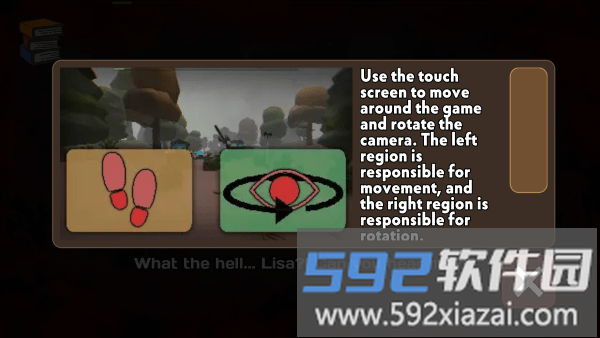 进入操作界面,左手区域控制角色移动,右手区域让你自由转动镜头观察四周。