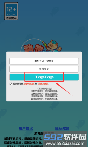 2、在登录页面找到蓝绿色的TapTap图标,点它进入授权步骤。