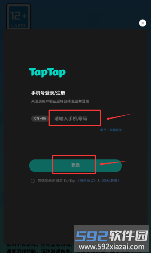 3、输入手机号码,轻触绿色登录按钮,系统会自动注册或直接登入。